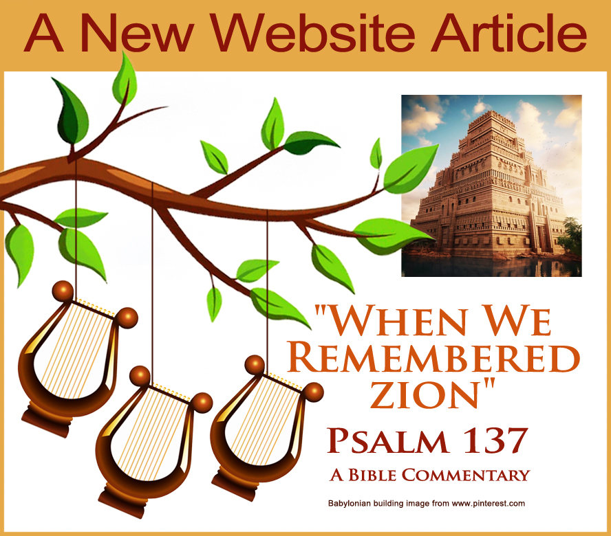 Posted on April 5, 2026April 5, 2026A New Website Article : “When We Remembered Zion” : Psalm 137 : A Bible CommentaryClick here to read the full commentary
